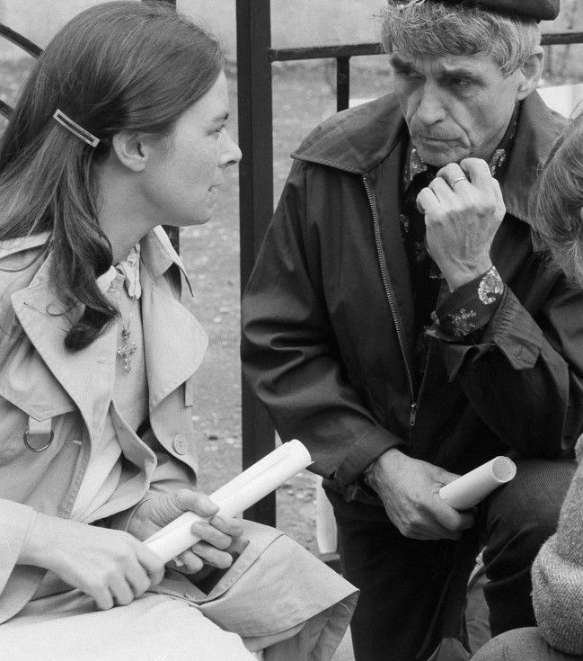 Political activist and Jesuit priest, Father Daniel Berrigan talks with Sister Rosaleen O’Halloran in New York on April 30, 1981. She is on a hunger strike in support of caparisoned IRA guerrilla Bobby Sands since a rally at the United Nations in support of Sands. Sands was reported deteriorating at an alarming rate, and his mother has promised to let him die of starvation rather than compromise. Date: 04/30/1981